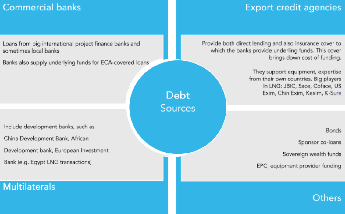 Other providers of funding include project sponsors, usually gas majors, providing co-loans that are pari passu or on equal footing with bank debt.